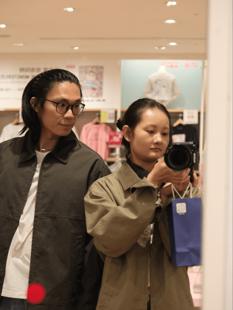 我们去了附近优衣库,是华南地区最大的优衣库,一共有 4 层楼高,和我们喝 Peet’s Coffe 的 VT101 是合在一起的,左边是 VT101 右边是优衣库。里面的冷气很足,里面也开始上架了秋冬季的服装单品,我们和几对刚进来的情侣都看上了一款拉链翻领的工装外套,类似上个世纪的维修工人的衣服。我们各自挑了一件,对着镜子试穿起来。